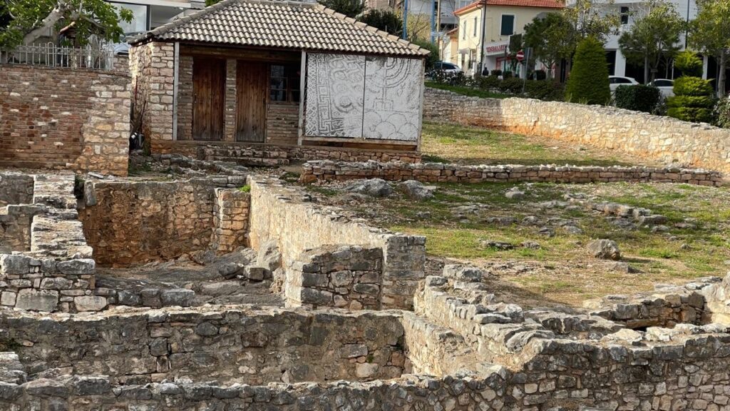 Pamje e përgjithshme e rrënojave të bazilikës, që shfaq shtrirjen e kompleksit në hapësirën urbane. Foto: Media Amfora