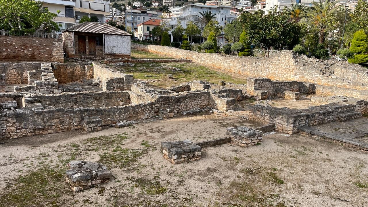 Pamje e përgjithshme e rrënojave të bazilikës, që shfaq shtrirjen e kompleksit në hapësirën urbane. Foto: Media Amfora