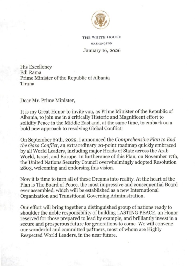 Ftesa ndaj kryeministrit Rama për pjesëmarrjen në Bordin e Paqes, një organizatë e themeluar nga Presidenti Trump, u trumpetua nga mediat në Shqipëri si arritje e udhëheqjes së Ramës. E vërteta është ndryshe.