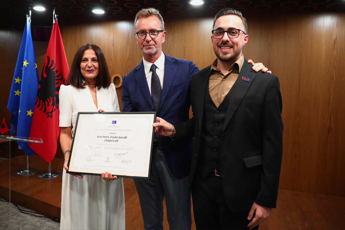 The European Union awarded three prizes for the most outstanding investigative stories in Albania in 2024. First place went to journalists Geri Emiri and Erjola Azizolli from Amfora.al, whose investigation revealed the destruction of the archaeological infrastructure in the Butrint National Park as a result of constructions from government-backed so-called “strategic investors” in the “Bay of Monastery”.