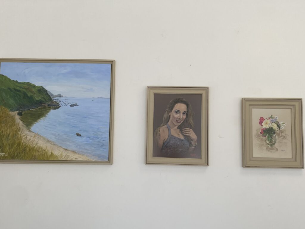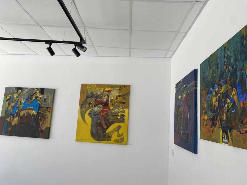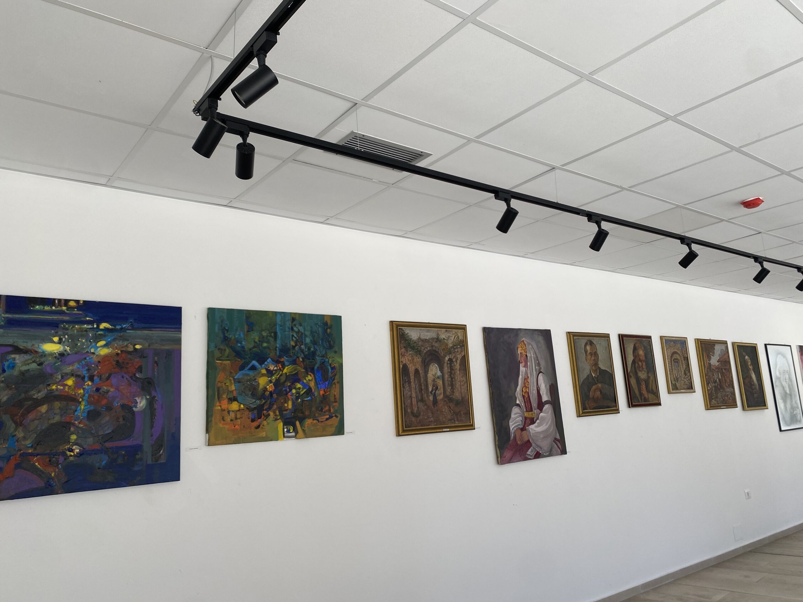 Në muret e galerisë shihen gjithashtu peizazhe të qeta, kompozime figurative dhe punime me qasje më moderne e abstrakte, ku ngjyra dhe forma përdoren për të krijuar emocione dhe interpretime të lira artistike. Larmia e teknikave, nga vizatimi grafik me laps deri te pikturat me ngjyra të forta dhe kompozime ekspresive, krijon një dialog interesant mes stileve dhe brezave të artisteve.