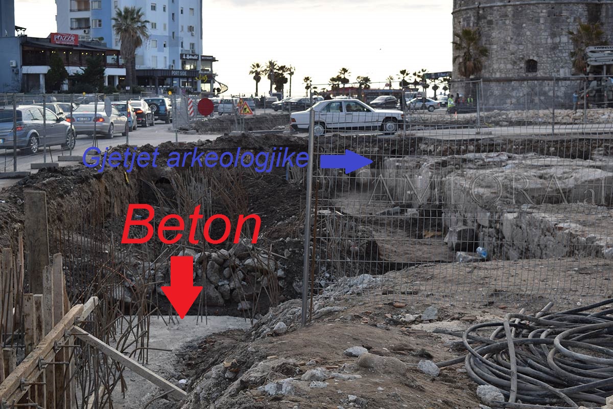 Betoni ka shkuar deri pranë gjetjeve arkeologjike dhe shumë pranë murit rrethues të qytetit, mbuluar përgjatë kryerjes së punimeve.